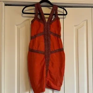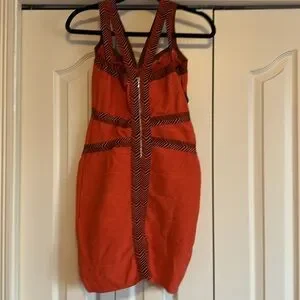 59 BEBE | Orange And Black Bandage Dress