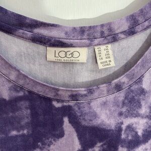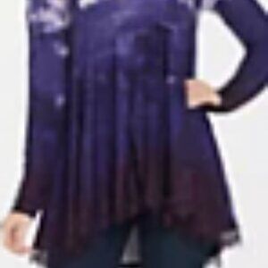 Logo by Lori Goldstein Printed Swing Top with Lace Hem Midnight Purple