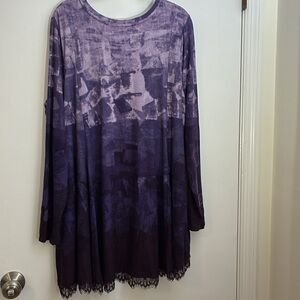 Long Sleeve Rayon spandex blend. Oversized fit. Long Sleeves. Has 2internal side pockets. Eyelash lace hem. Some very slight wash wear. Top is really pretty