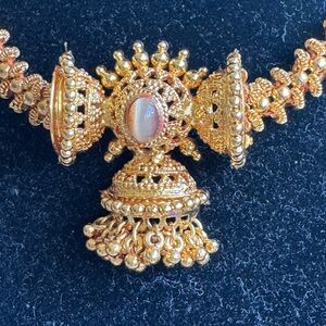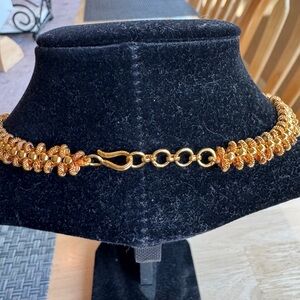 This stunning gold necklace is perfect for any occasion. Its intricate design adds a touch of elegance to your outfit.