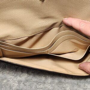 Notable Flaws: Normal minimal wear on front and back of wallet, minor scuff marks, inside of wallet is clean with some discoloration from coins in the back zip pocket.