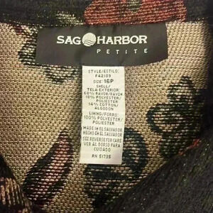 Vintage Sag Harbor Tapestry Jacket Women's 16 Floral Print Button Up Woven Blazer.