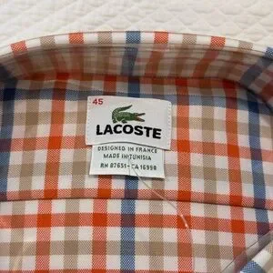 Elevate your style with the Lacoste Men's Checkered Shirt. Featuring a vibrant mix of orange, blue, and white, this shirt offers a classic yet modern look. Perfect for any occasion.
