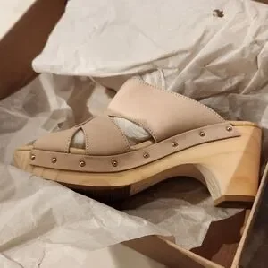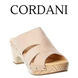 A curvy platform and heel carved from a single piece of natural wood elevate the old-school aesthetic of a studded slide sandal in rich leather. This style is part of the Five Worlds by Cordani collection, which was inspired by the ancient Aztecs and the Mexican landscape. Style Name: Cordani Zafira Slide Sandal (Women 3in heel.