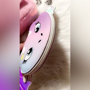NWOT Luv Betsy by Betsy Johnson Pastel Dragon Animal Clutch Wristlet Wallet , 2 CARD SLOTS & Iridescent Wings 7” X 5” & NWOT JUSTICE SHERPA CROSSBODY BAG W/ SILVER CHAIN REMOVABLE STRAP 8” X 7” Approximately… BOTH ITEMS ARE SUPER CUTE!!
