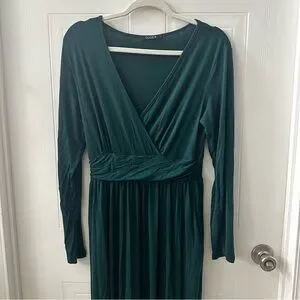 Green Maxi Dress L Faux Wrap Long Sleeve Wedding Guest Maternity | OUGES