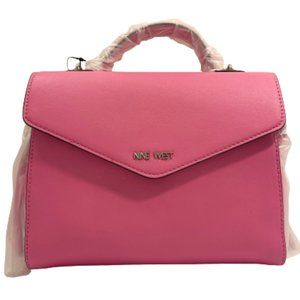 Check out this super cute new pink purse by Nine West. This Abarrane-Guava bag has a removable shoulder strap and features 2 zippered pockets and a pouch on the inside. Approximate measurements Width - 9 1/2" Height - 8 1/2" Depth - 4"