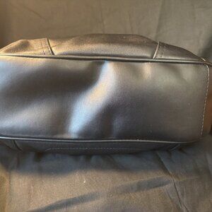 This is a new Stone & Co. medium shoulder bag in black. The exterior is made of leather and the handle/strap is also made of leather. The lining color is black and the size is medium. The inside fabric is rayon. There is a small snap pocket and a larger zip pocket on the front. Inside includes a zipper pocket and two smaller slide pockets, one with a valcro closure. The back of the purse features a zipper pocket as well. The shoulder strap is adjustable. It measures 11 inches wide, 8.25 inches tall and 7 inches deep. The hardware is gold with the Stone & Co logo.
