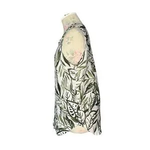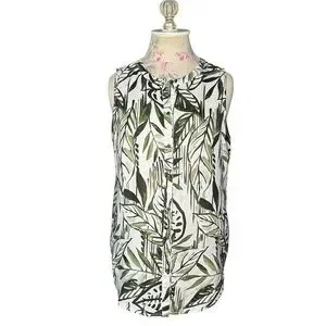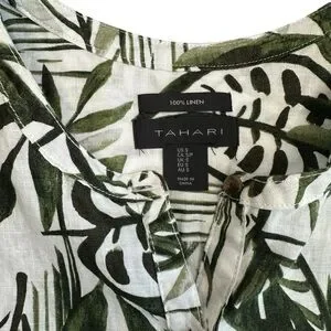 Tahari 100% Linen Tropical Palm Leaf Sleeveless Button-Front Top – Size Small