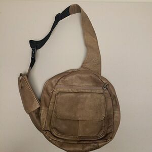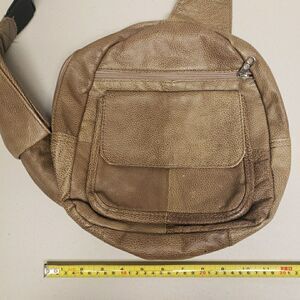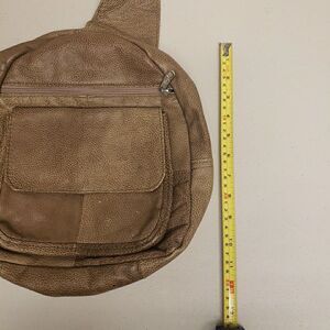 Genuine Leather Crossbody Sling Backpack Unisex Brown Multi Pocket