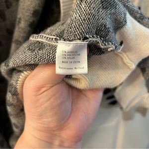 Stay stylish and cozy with this chic black and white patterned sweater. Perfect for layering, this sweater adds a touch of elegance to any outfit.