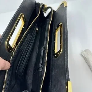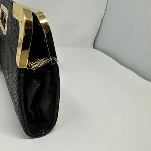 Super unique genuine leather clutch with a beautiful embroidered print on the leather. It has gold hardware and a very sharp design. This is a large bag and can fit a lot. In excellent like new condition.
