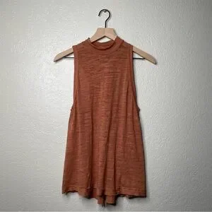 We The Free Mock Neck Sleeveless Tank Top Rust Burnt Orange Boho Free People