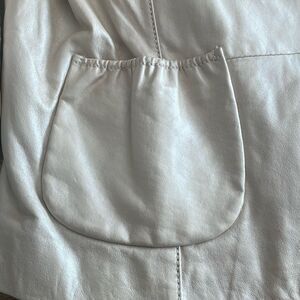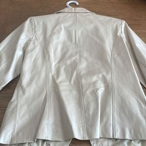 DIALOGUE LIGHT CREAM LEATHER JACKET. NEW WITHOUT TAGS. NICE DETAILING…. Buttons, pockets