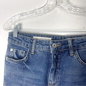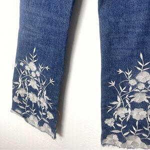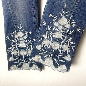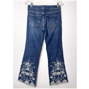 ANTHROPOLOGIE Pilcro Hi Rise Flared Crop Floral Embroidered Blue Jeans Boho 26