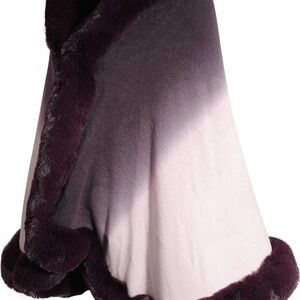 Elegant cape with brown faux fur trim. Features a gradient from brown to cream.