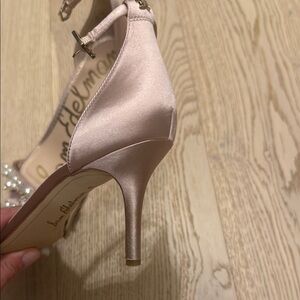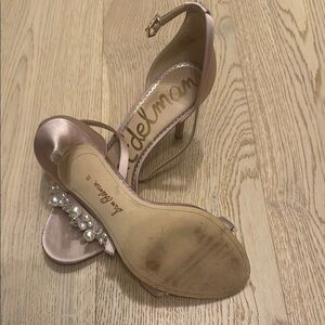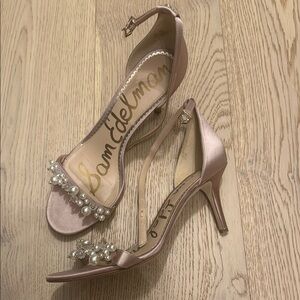 Step out in style with these elegant Sam Edelman heels. Featuring a chic pink hue and stunning pearl embellishments, these shoes are perfect for any occasion.
