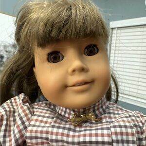 Charming doll dressed in a classic plaid dress with a striking red belt. Perfect for imaginative play and display.