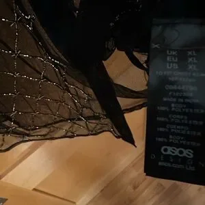 Elegant black sheer shirt with intricate beaded design. Perfect for a stylish look.