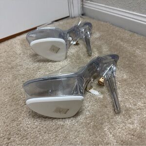 Step out in style with these chic clear platform heels. Perfect for any occasion, these shoes offer a modern and versatile look.