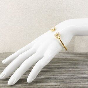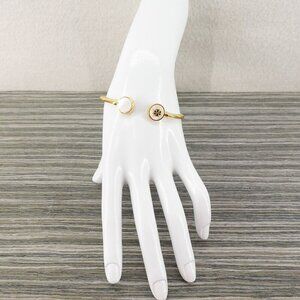 Tory Burch Kira Mother of Pearl Logo Cuff Bracelet Ivory OS