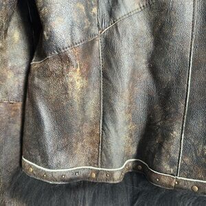Elevate your style with this chic custom brown leather jacket from Overland featuring luxurious fur lining & trim. Crafted from double faced rabbit fur with a flattering, slightly fitted cut. New Condition, very soft, warm and never worn.