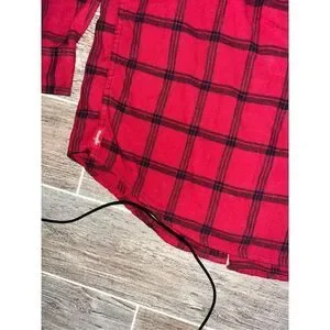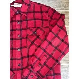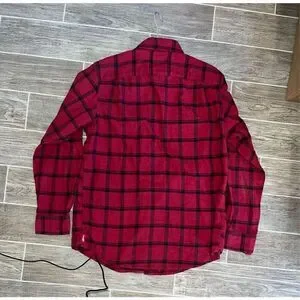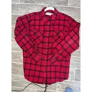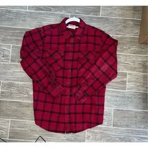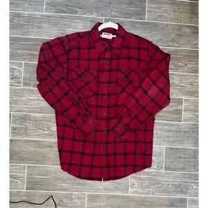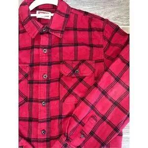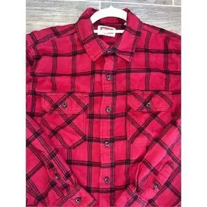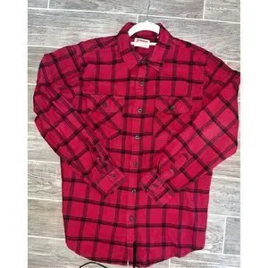 Wrangler red plaid shirt. Nice thick flannel. Red plaid. Size med. 55% cotton, 45% polyester. Made in Bangladesh. Long sleeve. 2pockets on front. The Wrangler logo is on the bottom hem of the shirt. Shirt is in nice condition. No holes, no rips or stains. Not new, but a lot of life left. Casual or work. Maybe just play!?