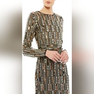 NWT Mac Duggal Black Long-Sleeve Embellished Midi-Dress 93590 SZ 10