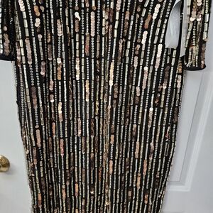 Step out in style with this elegant black and gold dress. Perfect for any occasion, this dress combines sophistication with a touch of glamour.