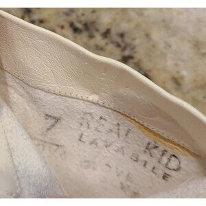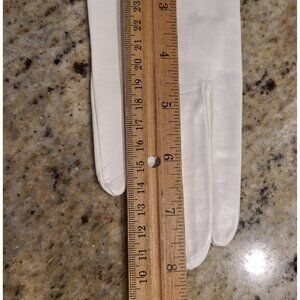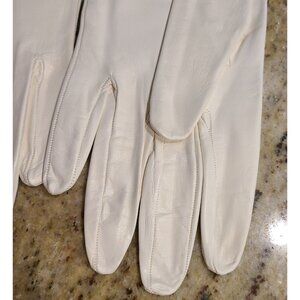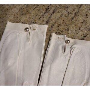 Vintage Women Size M 7 Off-White Soft Kid Leather Formal 8" Gloves Pearly Button
