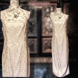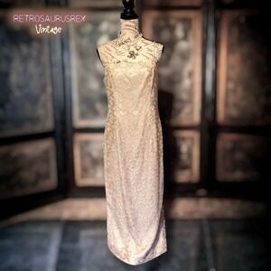 Vintage 90s Old Hollywood Antique Lace Special Occasion Dress, 10