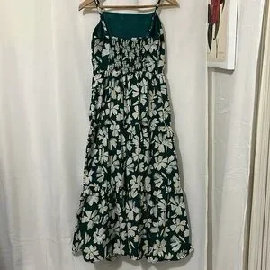 GAP 100% Cotton Green and White Floral Maxi Dress a176