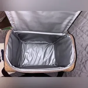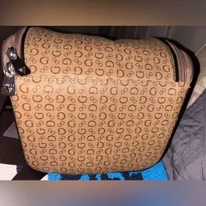 Stylish brown monogram cosmetic bag/lunch bag..by Guess. Features a classic design with a convenient zip closure all the way around..measurements 9”x7”x6”..insulated to keep things cold or hot..like I said it can be used as a cosmetic bag or lunch bag..(NWOT) new without tags..never carried..just took tags off and added to my collection..has no wear or tear..smoke free home..