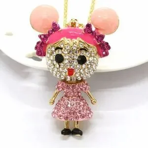 Adorable Pink Bling Cartoon Girl Crystal Pendant Necklace NWOT