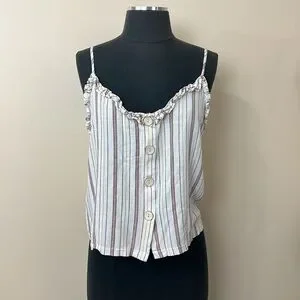 Slightly cropped tank with decorative buttons, lightweight with adjustable straps, perfect for warmer weather