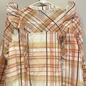 NWT Anthropologie Pink/Rose Plaid Current Air Polly Long Sleeve Blouse Size XS