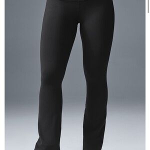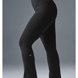 Experience unparalleled comfort and style with ALO Yoga's black leggings, featuring a high-waisted, seamless design for a sleek silhouette. Crafted from a stretchy, moisture-wicking fabric, these leggings are perfect for any workout or casual day. Enjoy the full-length fit that effortlessly complements your active lifestyle.
