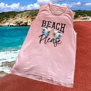Woman's Beach Print Crew Neck Tank Top, Casual Sleeveless Tank Top (new)
