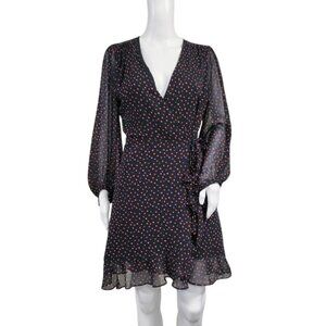Banana Republic Wedding Guest Heart Twee Y2K Valentine Mini Wrap Dress Black 2
