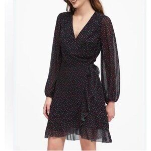 Title: Banana Republic Wedding Guest Heart Twee Y2K Valentine Mini Wrap Dress Black 2