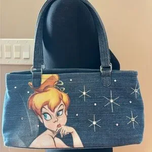 Tinkerbell trendy blue denim shoulder bag with spacious interior. Perfect for everyday use.