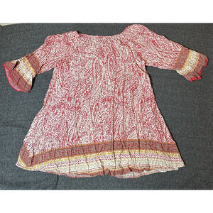 Altar’d State Shirt Womens Size Medium Red Beige Flowy Flutter Top Cottagecore
