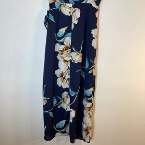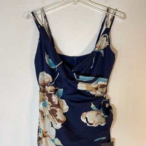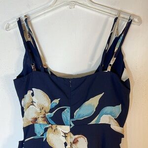 NWT. Lulus Small Draw You Close Navy Blue Floral Sleeveless Surplice Midi Dress.