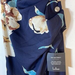 *NWT. Lulus Draw You Close Navy Blue Floral Sleeveless Surplice Midi Dress.