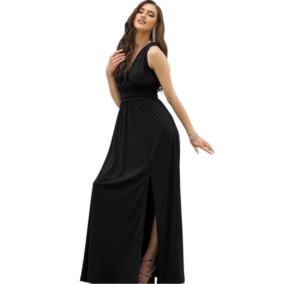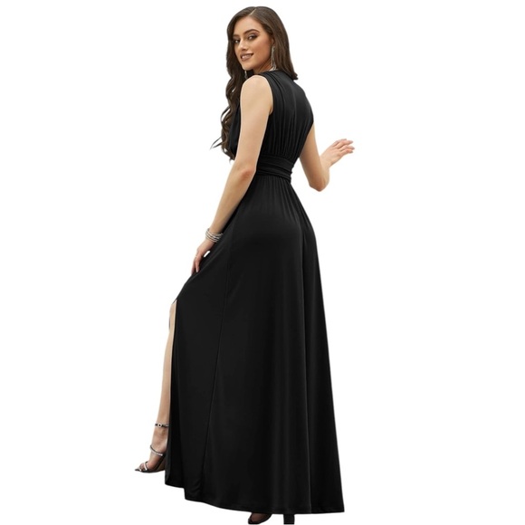 KOH KOH Long Sleeveless Elegant Formal Evening Maxi Dress Black Size Large