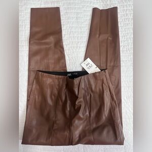 NWT ZARA beautiful faux leather pants in a size L with a cotton/fuzzy lining 🤎