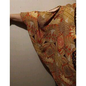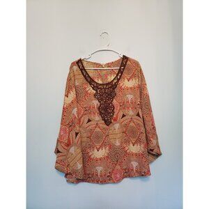 Reba Women Plus 3X Poncho Cold Shoulder Blouse Orange Pullover Boho Flowy Sheer