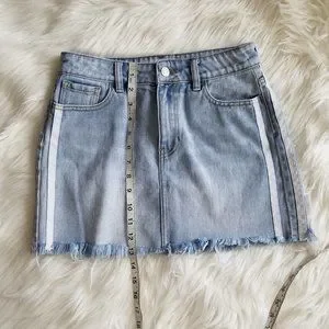 Pacsun denim mini skirt size 25 - Excellent Condition - Color: Light wash with two stripes on the sides - 100% Cotton - Approx. Measurements: - Waist: 13.5" wide - Length: 13" long