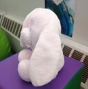 Adorable soft pink plush bunny. Perfect for cuddling.