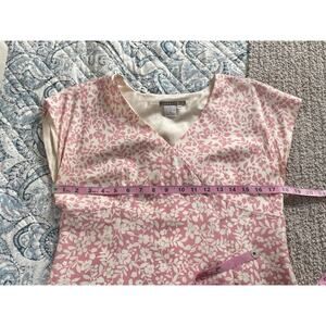 Feel effortlessly feminine in this gorgeous 100% silk midi dress by Isabella Bird, size 6 Petite. Featuring a soft ivory and blush-pink floral print, this dress combines comfort and elegance with its flutter cap sleeves, flattering V-neckline, and flowy silhouette.